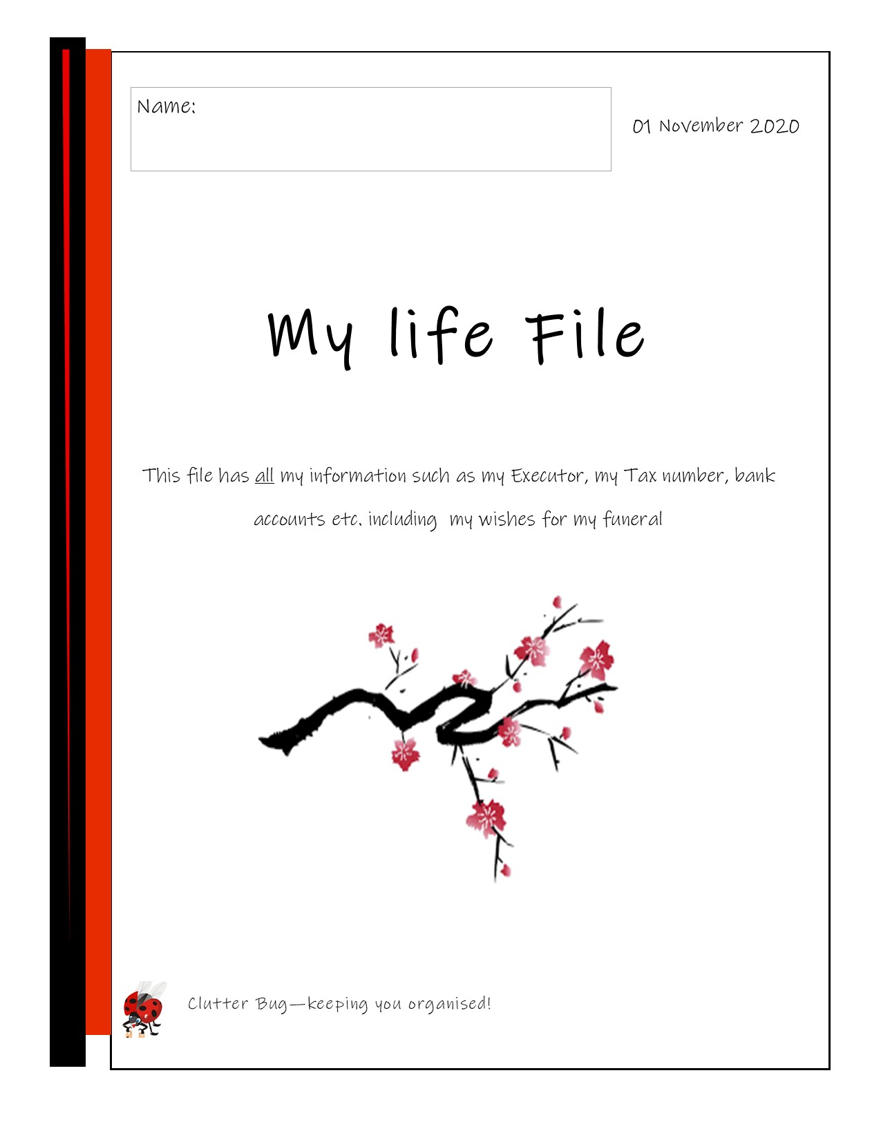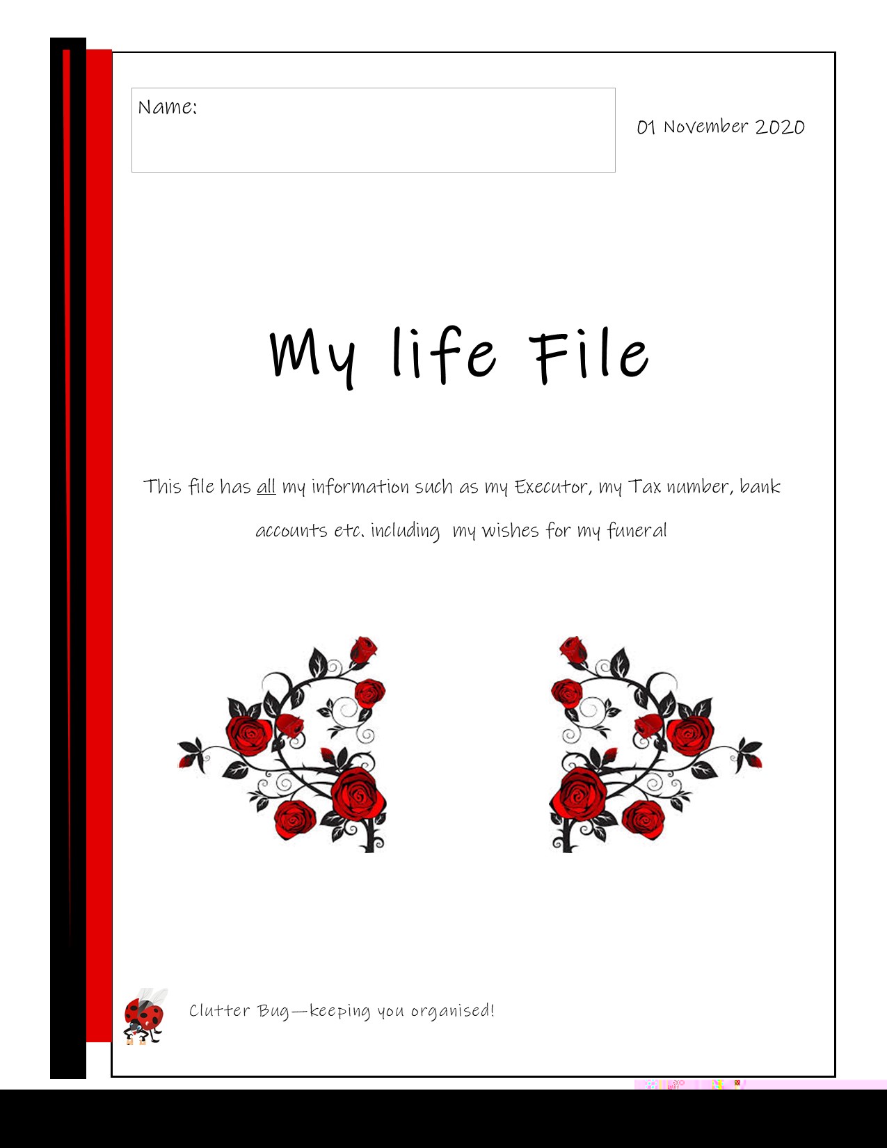 - My LIFE File - has pages/sections for: